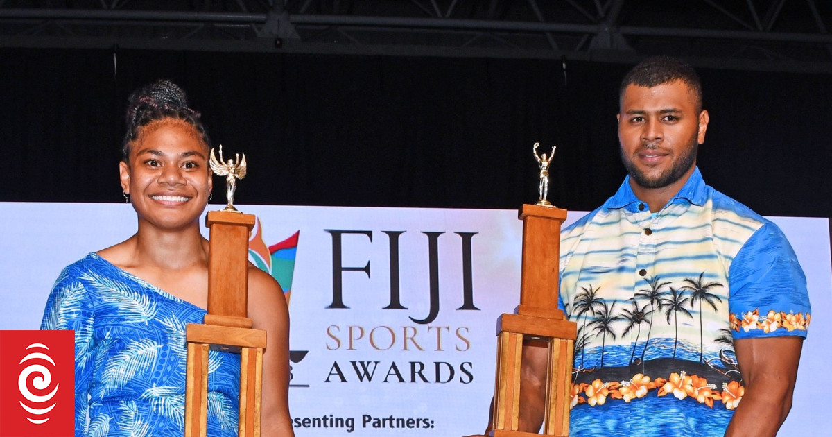 Miriama Taletawa, left, and Taniela Rainibogi, right, were awarded the Fiji Sports Council 2023 Sportsman and Sportswoman of the Year respectively in Suva on Saturday night.